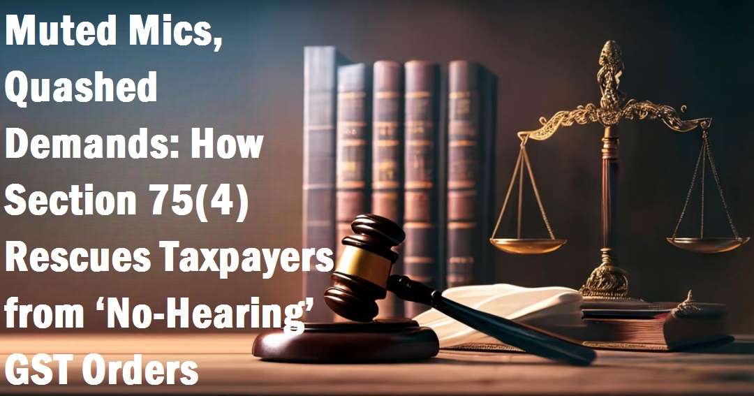 Muted Mics, Quashed Demands: How Section 75(4) Rescues Taxpayers from 'No-Hearing' GST Orders Picture this: A summary show cause notice (SCN) in DRC-01 lands on the GST portal. You are given a very short time (say, 7 days) to reply. No date of personal hearing is fixed, no video link is shared, no real opportunity to argue. Suddenly, an order in DRC-07 pops up confirming the demand with interest and penalty. If this sounds familiar, you are not alone. Across India, taxpayers are routinely facing GST demand orders...... Read More |