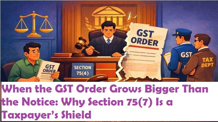 When the GST Order Grows Bigger Than the Notice: Why Section 75(7) Is a Taxpayer’s Shield In tax adjudication, the show cause notice is not a warm-up exercise. It is the battlefield map. It tells the taxpayer what is being alleged, on what grounds, and to what extent the department proposes to demand tax, interest, and penalty. Once that map is drawn, the adjudicating authority cannot suddenly redraw the borders in the final order. That is precisely the discipline built into Section 75(7) of the CGST Act.......... Read More |