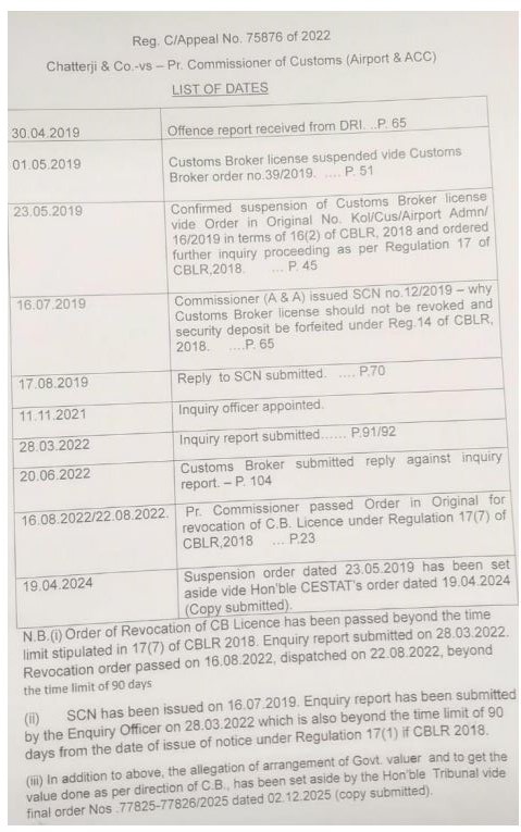 2. The Learned Counsel appearing on behalf of the appellant submits the details of chronological events leading to the present litigation. He submits that vide OIO Number KOL/CUS/AIRPORT/ADMN/OBDIG/16/2019, the license of the present appellant was suspended. This Bench vide Final Order Number 75731/2024 dated 19.04.2024 set aside the suspension order and allowed the appeal filed by the appellant.