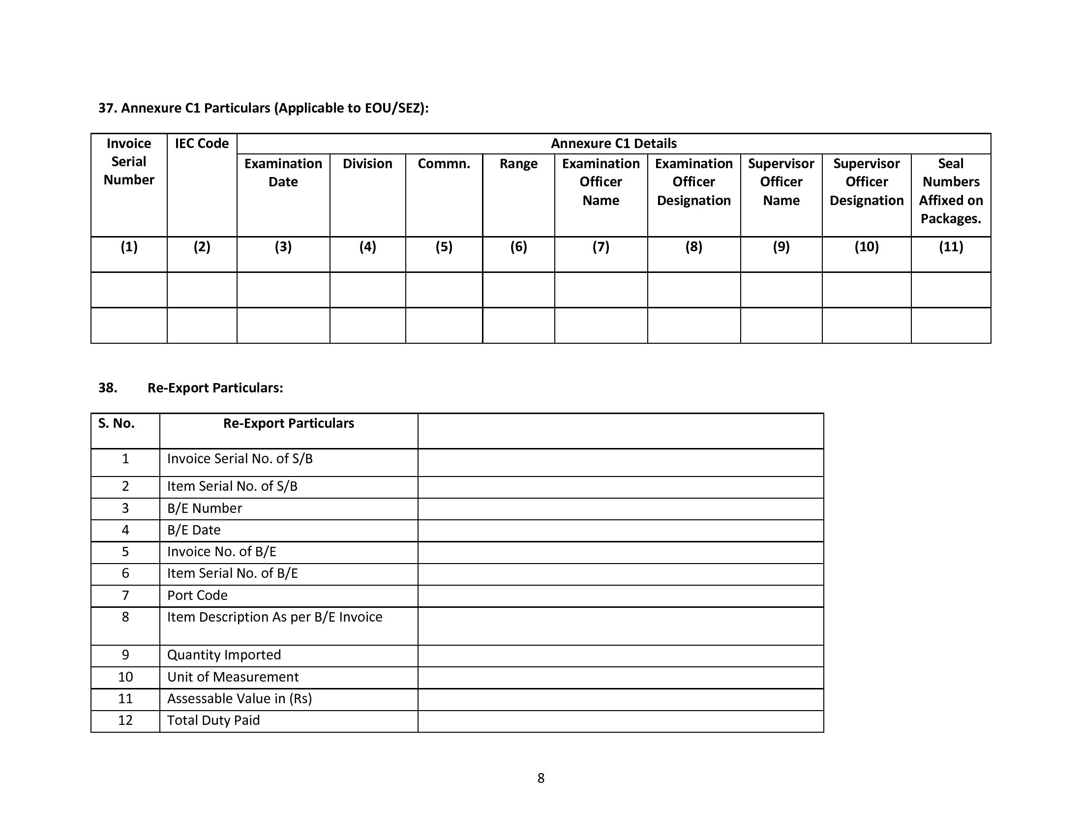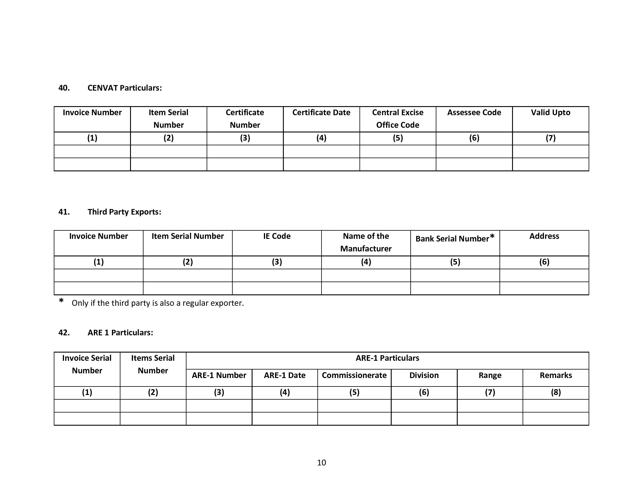 1. Duty Exemption Entitlement Certificate/ Advance Authorisation/ Duty Free Import Authorisation Declaration