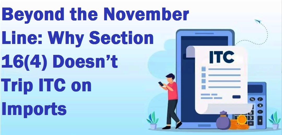 Beyond the November Line: Why Section 16(4) Doesn't Trip ITC on Imports Section 16(4) of the CGST Act sets a hard stop for ITC claims only for invoices and debit notes. IGST paid on imports is claimed on the strength of a Bill of Entry (BoE)-a different, customs-side document expressly recognized by the GST law. Because Parliament named invoices and debit notes-but not BoEs-in Section 16(4), the November cut-off doesn't apply to import IGST, so long as the importer satisfies the usual eligibility conditions...... Read More |